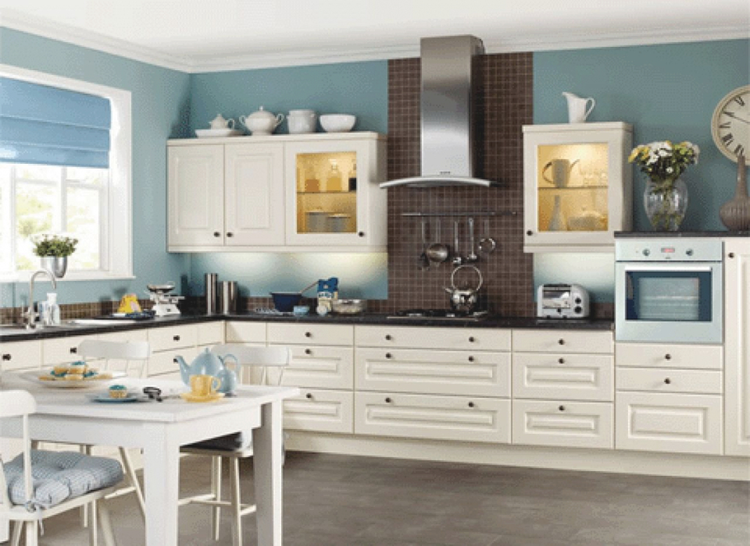 Warna biru yang identik dengan gelora yang baru dan fresh membuat warna ini cocok untuk pengapikasinya di dapur, kami sarankan untuk menggunakan warna biru muda yang kalem supaya kegiatan memasak lebih santai. Jika kamu menggunakan warna yang tua pilihlah yang tidak terlalu kelam karena mungkin bisa memberatkan suasana.