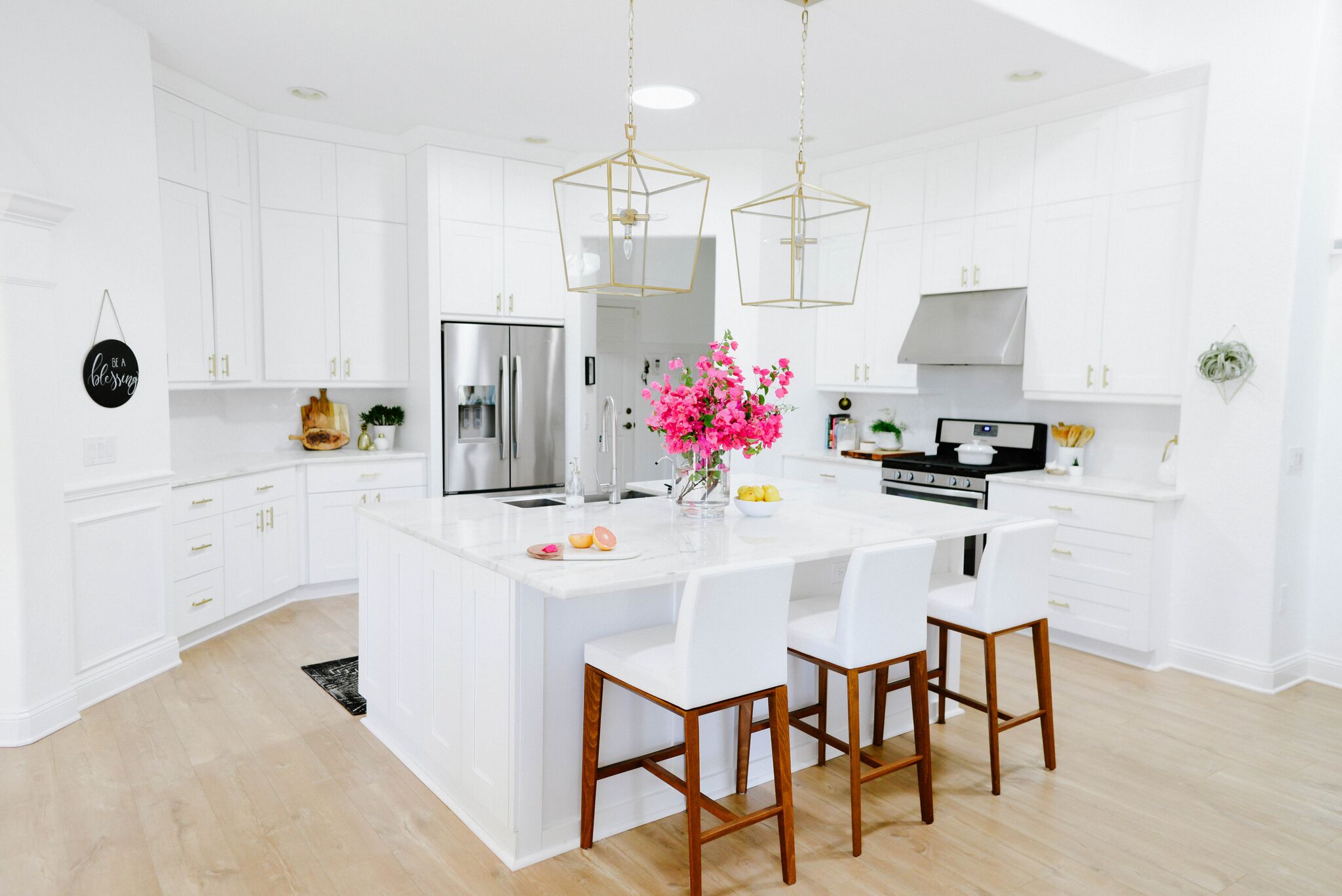 Warna putih membawa suasana segar, bersih dan baru setiap saat jadi ketika pagi hari saat ingin memasak menjadi lebih semangat. Warna ini juga membuat kamu lebih ceria saat memasak, selain itu warna ini juga bisa memberikan anda kesempatan untuk bereksperimen dengan warna untuk isi dapur dan sekelilingnya.
